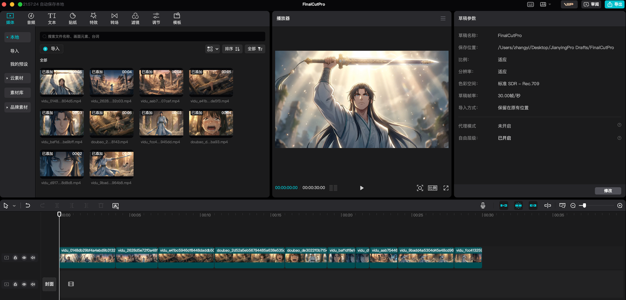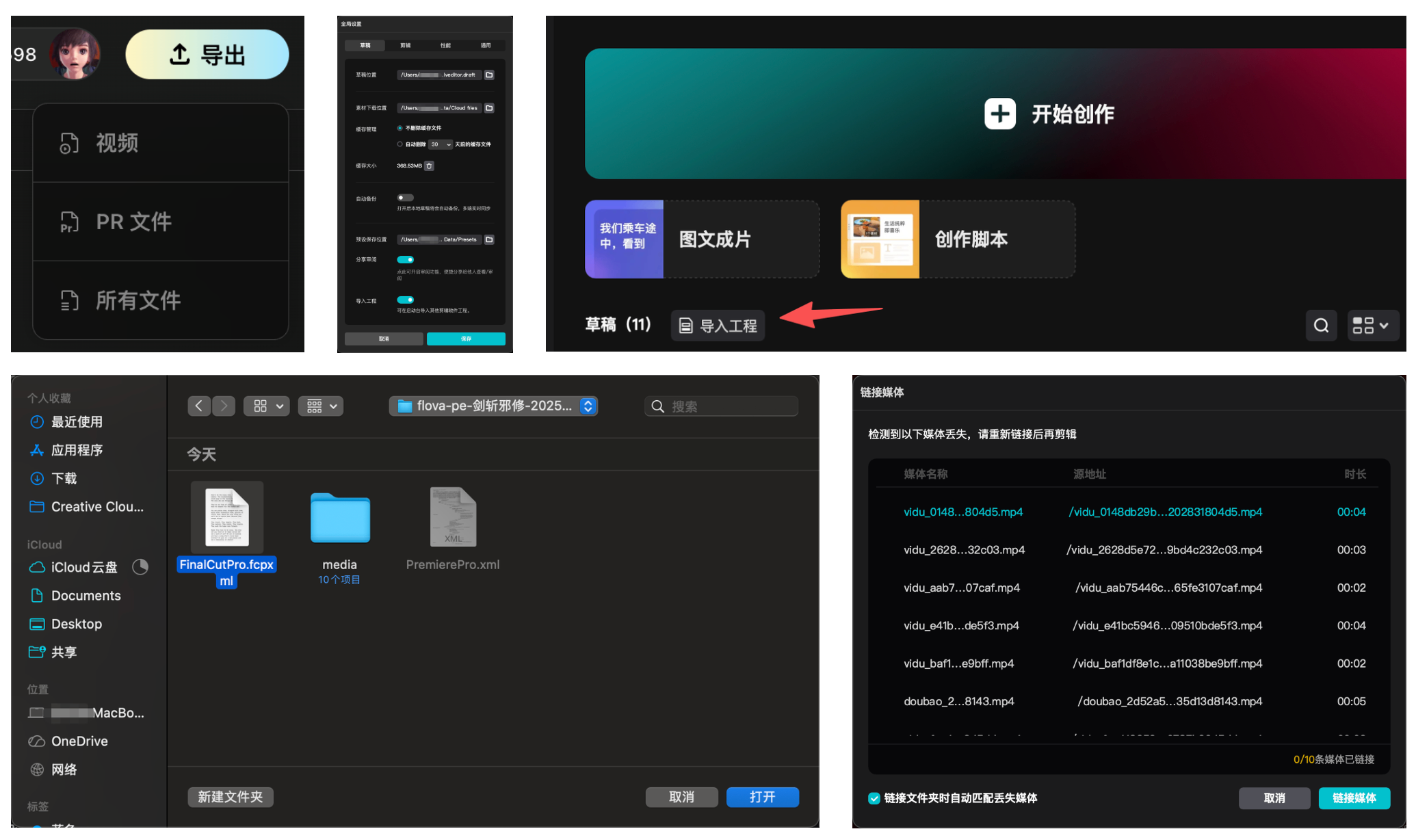 5. 导出工程文件,使用专业剪辑软件快速剪辑