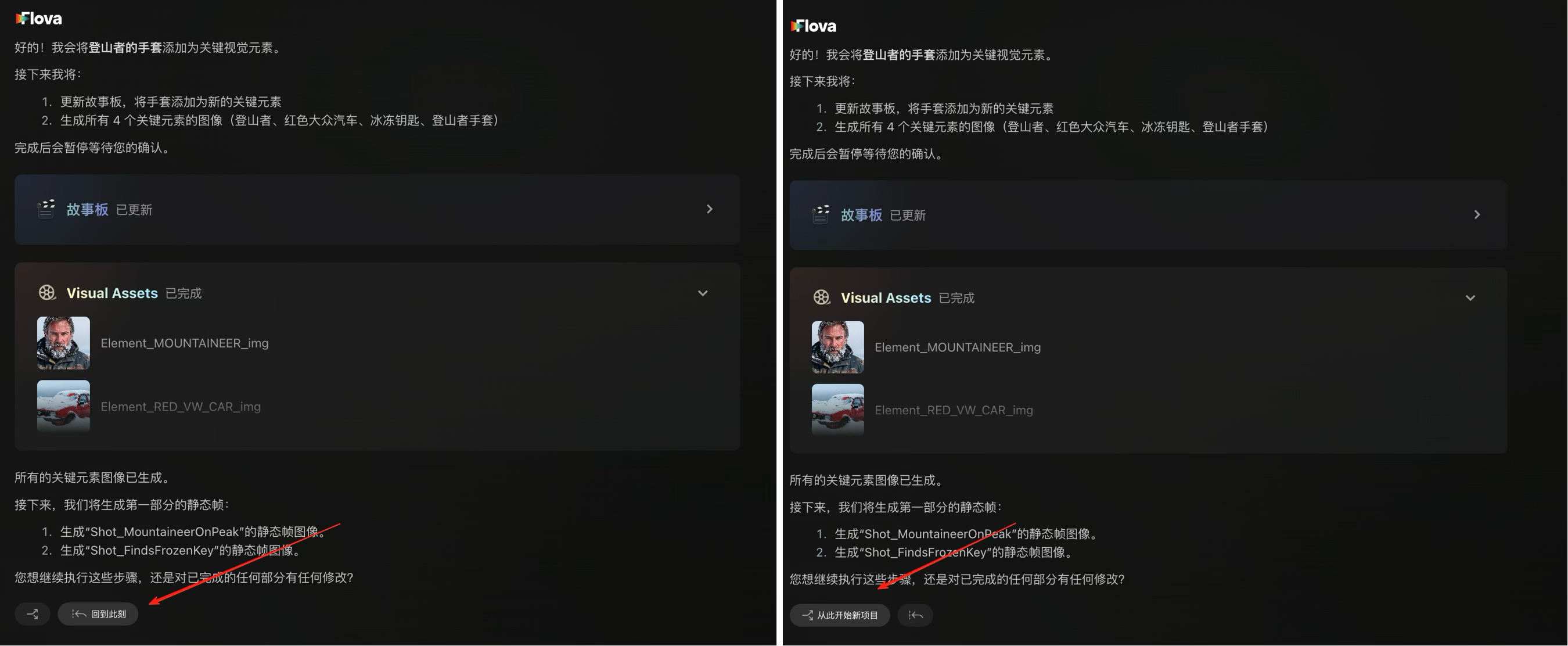 - “回到此刻”:将当前项目该节点以后的上下文全部删除,在遇到结果有异常时,该功能可以帮助快捷清理冗余上下文