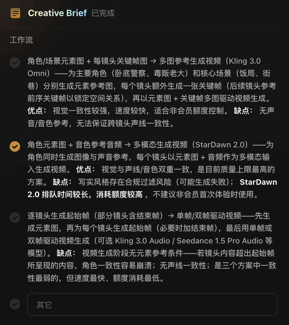你既可以直接指定使用StarDawn 2.0系列模型,也可以直接输入创意,Flova将智能推荐包含StarDawn 2.0的工作流。