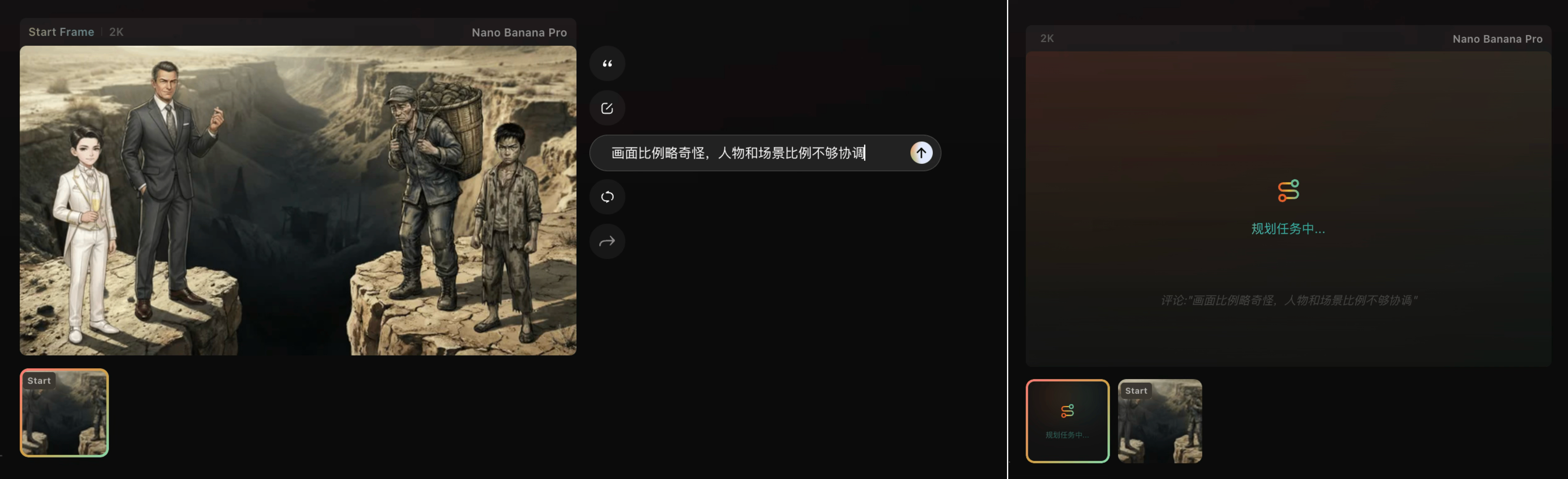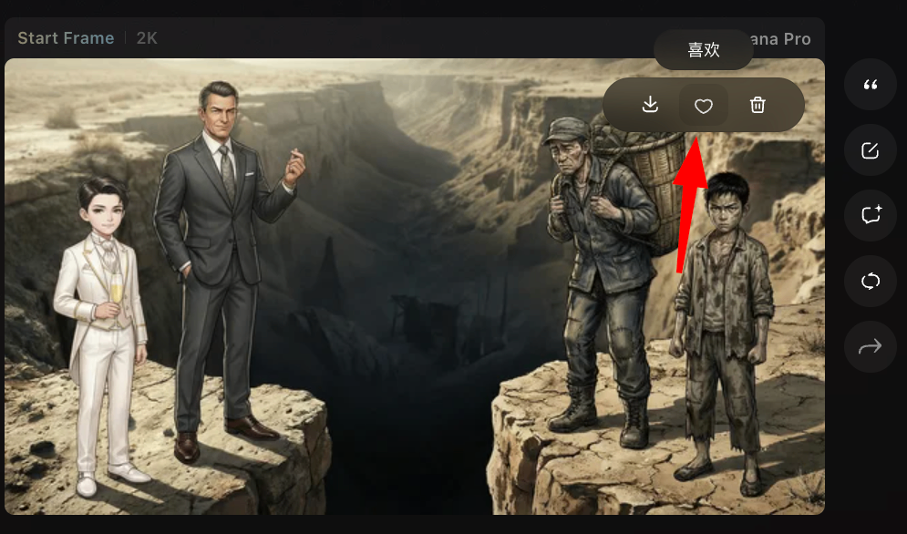 关键帧的引用:可以直接调整关键帧的生成,包括改变/微调画面内容(大白话描述需求,Flova 可以智能理解并响应)、改变生成模型等 -